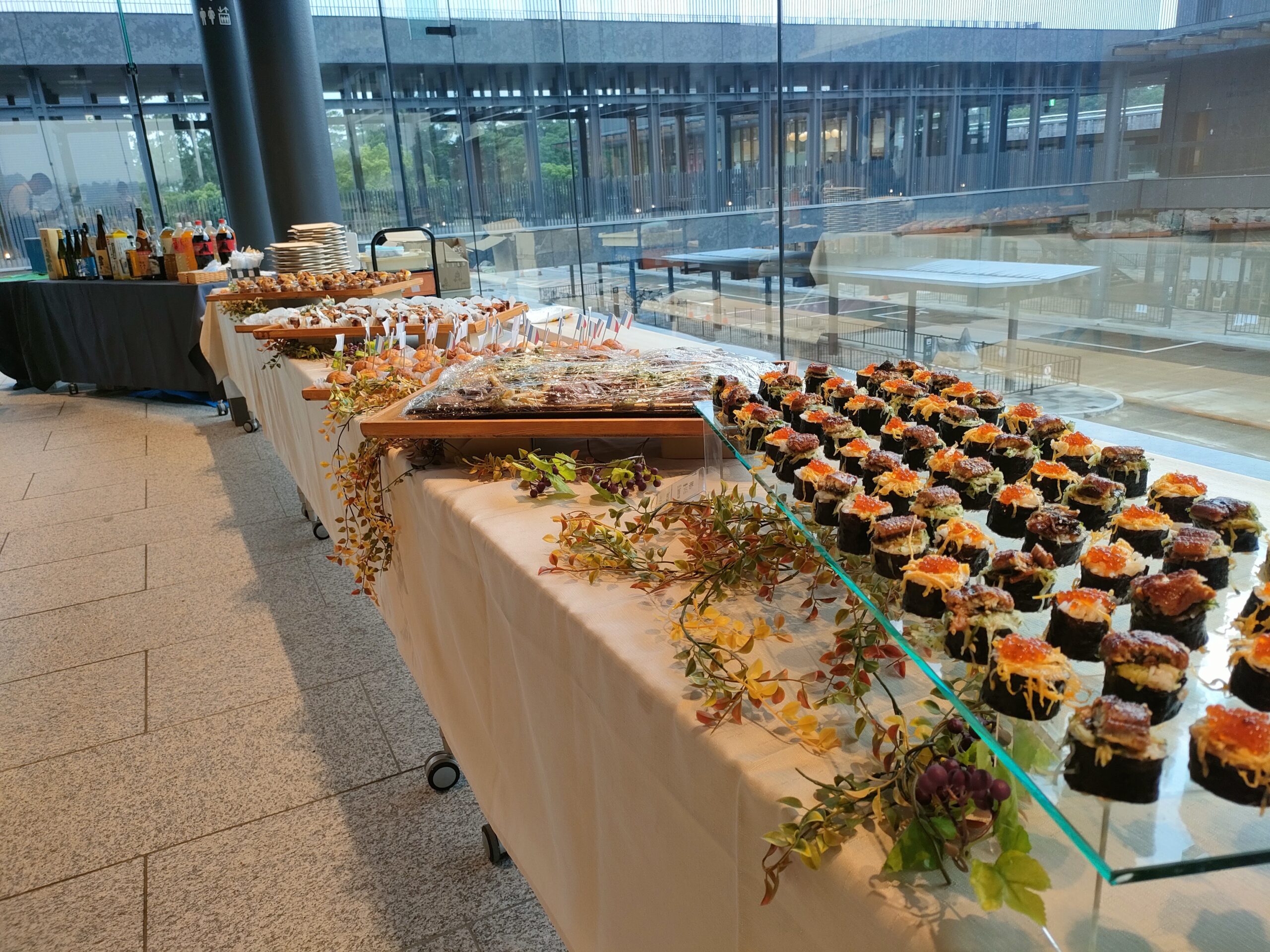 奈良バスターミナル2Fのレクチャーホールにて開催された学会後の懇親会で、ケータリングを担当させていただきました。