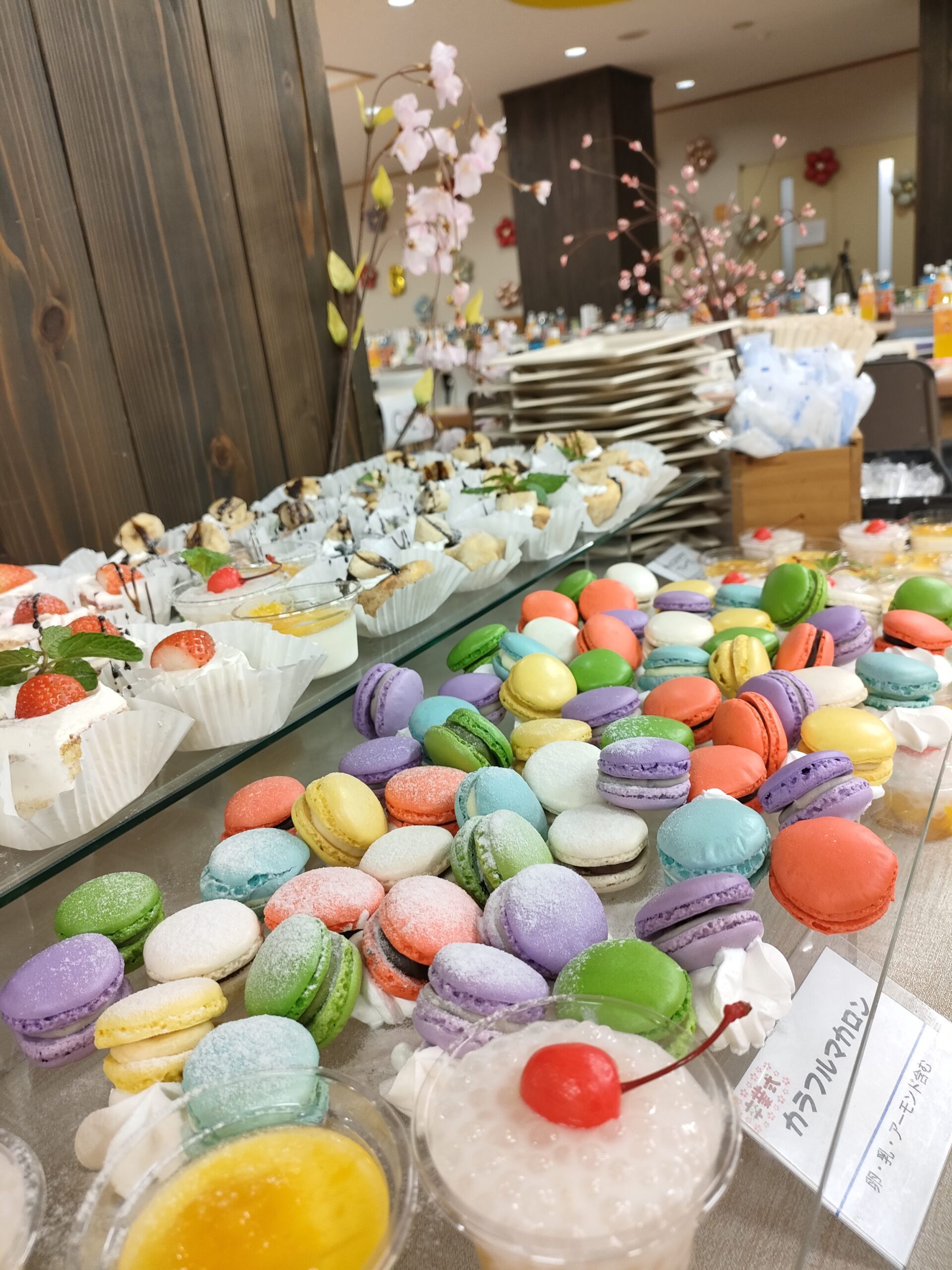 カラフルなマカロンや苺のショートケーキ、