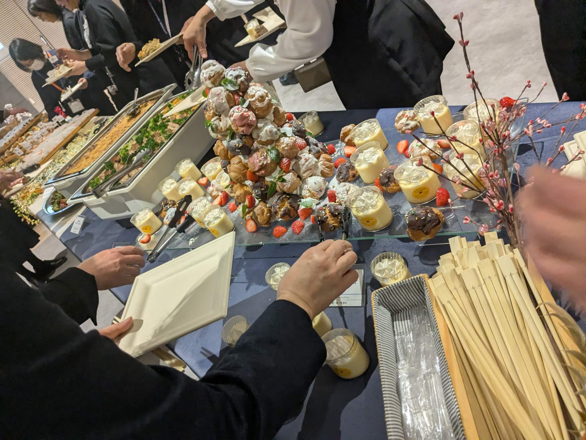 歓談を妨げない食べやすさと、見た目の華やかさを意識したビュッフェスタイル。